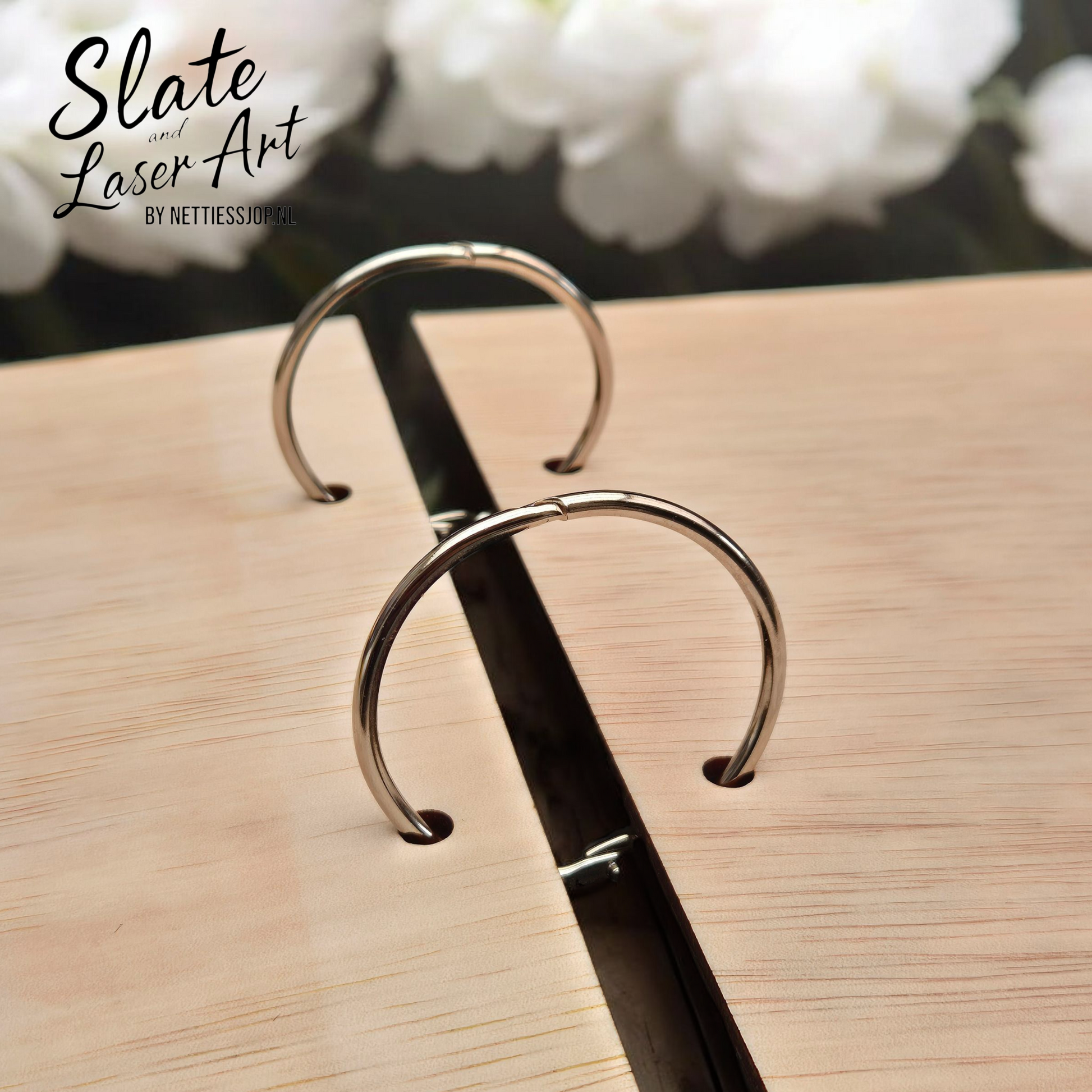 De voor- en achterkant zijn verbonden met twee metalen ringen 🔗 die je eenvoudig kunt openen. Zo kun je geboortekaartjes toevoegen of eruit halen wanneer je wilt. Maak met een perforator gaatjes in de kaartjes en berg ze veilig op in dit prachtige houten boekje. Er passen tussen de 20 en 30 kaartjes in — een liefdevolle bewaarplek vol herinneringen. ✨