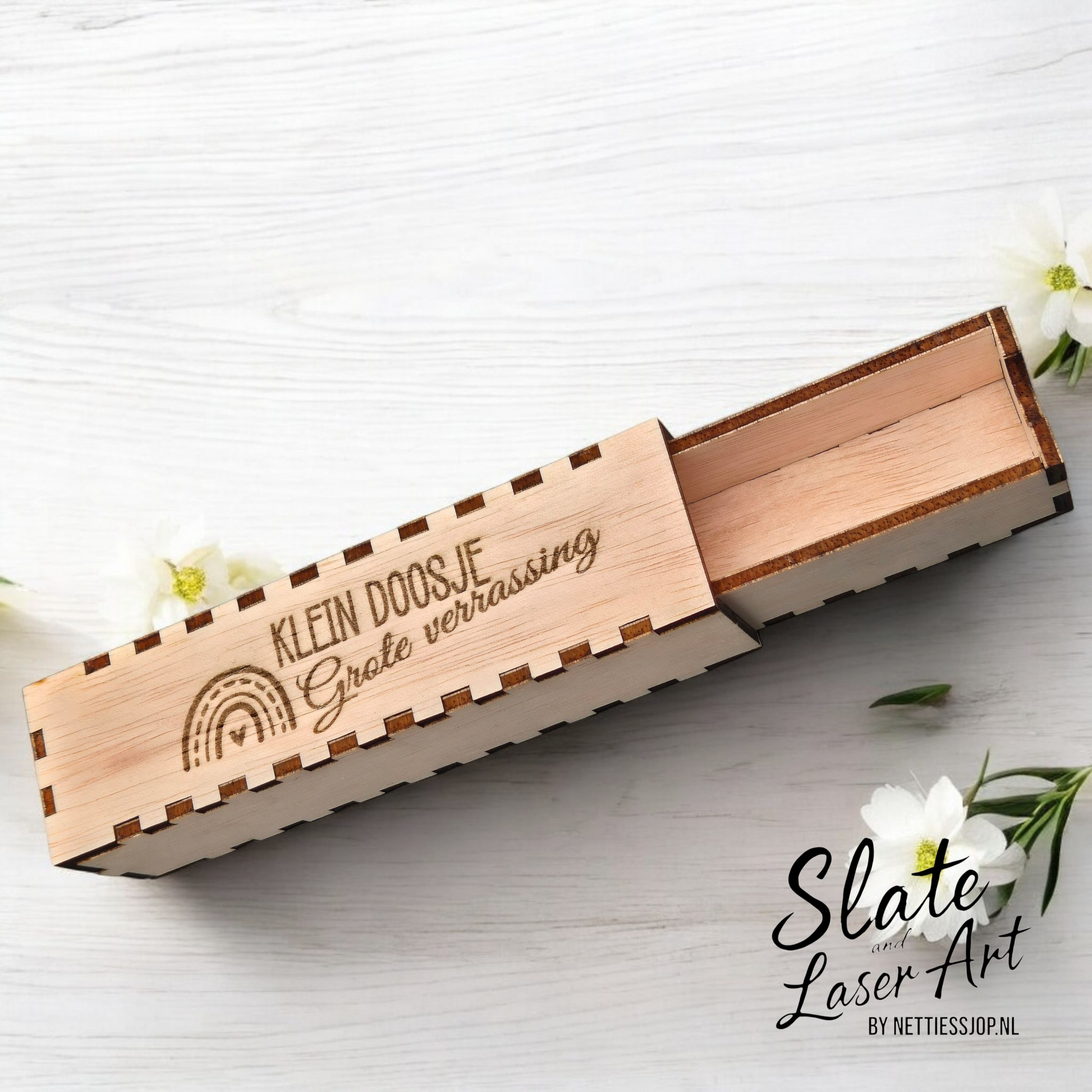 🌸 Houten bewaardoosje met schuiflaadje — Klein doosje, Grote verrassing 🌈